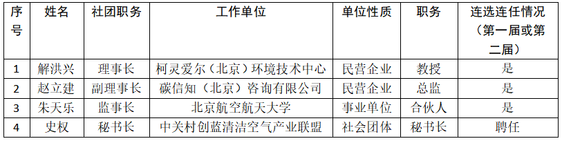 中關村創(chuàng)藍清潔空氣產(chǎn)業(yè)聯(lián)盟第二屆擬任擬任負責人名冊(共3人)