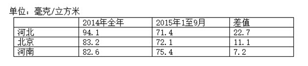 我取全國大氣質量最差的三個省/直轄市的統計平均數據做了如下的比較分析。